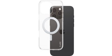 - PanzerGlass CARE by ® Feature Cover Trasparente con Kickstand Argento & MagSafe iPhone 16